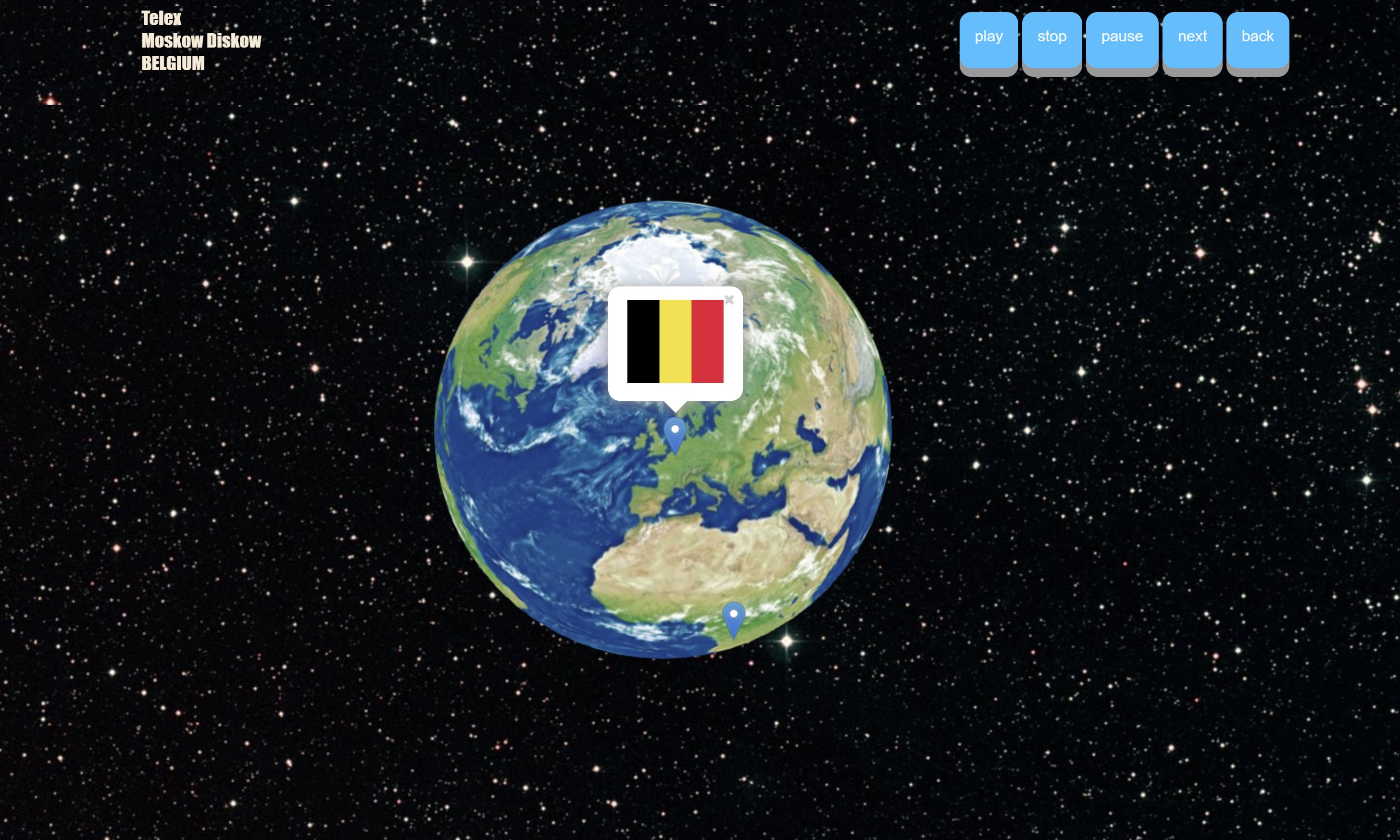 An audio player or rather a Muzik Globe created with Javascript, HTML and CSS interacting with Opensource API WebGL Earth.